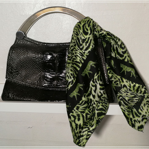 Tørklæder har jeg samlet i rigtig mange år. Og jeg har et stort antal i alle mulige afskygninger. Så jeg er ikke decideret i mangel af tørklæder. Og dog - der kan altid klemmes nye ind. Adgangskortet er, at de skal være i bløde og lækre kvaliteter, farverige og gerne i et specielt og smukt print. Flere af tørklæderne er genbrugsfund, hvor jeg næsten har stået på hovedet i diverse rodekasser. Og nogle gange fundet 'guldet'. Det lange grønne tørklæde er fra en rodekasse. Jeg har også været heldig at finde i secondhand/vintagebutikker, andre lækre butikker eller fået tørklæder som gaver.