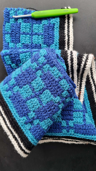 Selve mønstret kan også laves til andre projekter, f.eks plaids, sjaler, barnevognstæpper, håndklæder, brødservietter m.m.. Alle garnkvaliteter og tykkelser kan bruges.