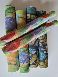 For at undgå kedelige kanter, så ruller jeg dækkeservietterne og løberne sammen. Simpelthen for at være fri for at finde strygejernet frem.